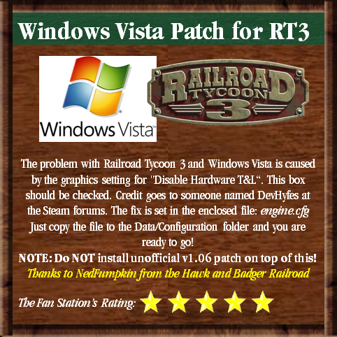 SKINS NEW! Have any train skins, custom-made trains/cars, company logos, OR player faces from RT3 that you'd like to share with the Railroad Tycoon community? Email file(s), description, and screenshots to: rtfanstation@yahoo.com (Available for RT3 ONLY) Kurt's Railroad Tycoon Fan Station is proud to showcase some skin packs from the recently closed RailroadTycoon.Info site. Hope you enjoy them!